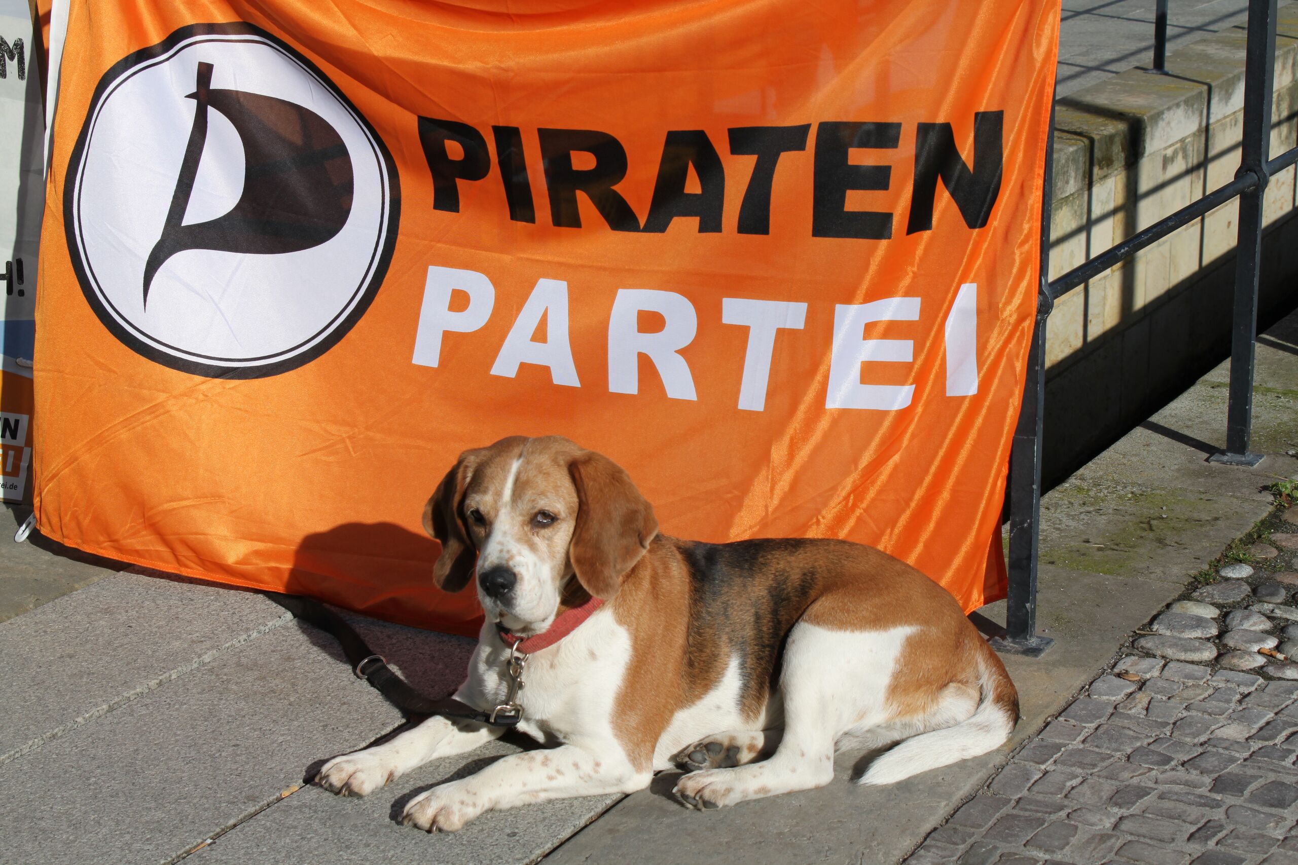 Version vom 23. Oktober 2010, 21:01 Uhr von Tramp (Diskussion | Beiträge) (Infostand (Detail: Hund) in Lutherstadt Wittenberg am 23.10.2010 zusammen mit Brandenburger Piraten / CC-BY 2010 Holger Kipp)
